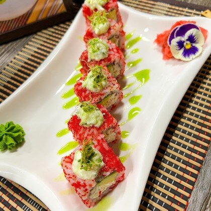 Калифорния с камчатским крабом, авокадо и икрой тобико