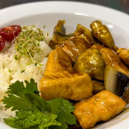 Лосось в соусе терияки с грибами и рисом